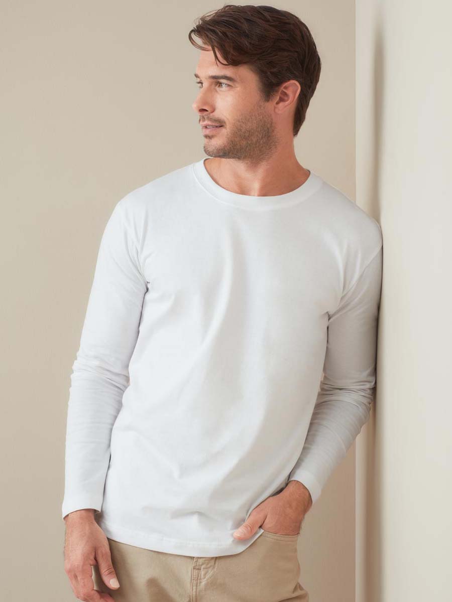 Suave camiseta de manga larga para hombre, de peso medio, sin costuras laterales y de resistente tejido Single Jersey de algodón.